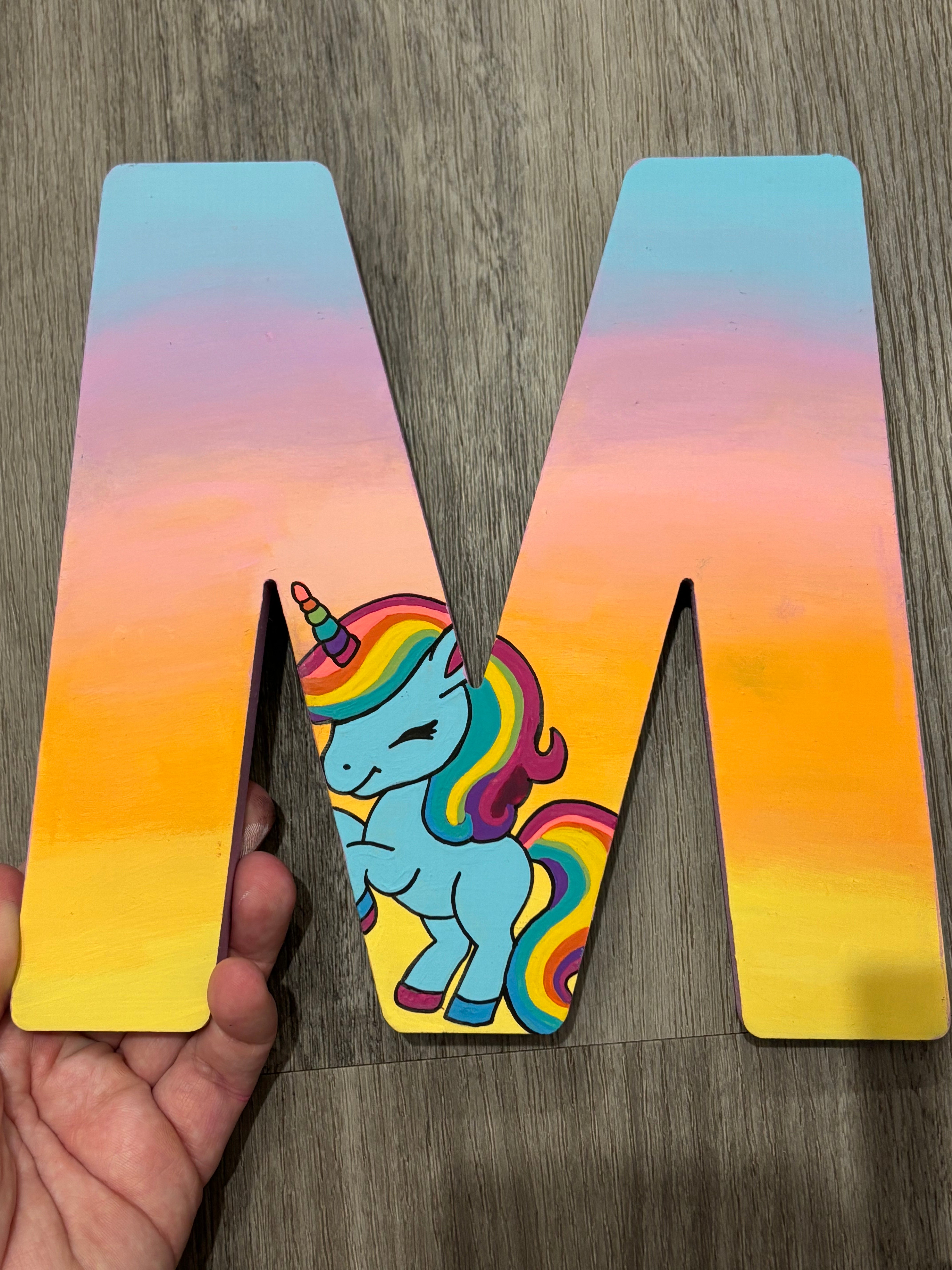 PLEASE IF YOU WANT SPECIFIC CHARACTERS OR A SPECIFIC IMAGE please email them to holisticgift@outlook.com once order is placed. After you order, I will get the letters as quickly as I can and start the background. Once the background has been done I will sketch your letter. Once it is sketched I will send you a photo of it via email or text. After I send you the photo I will paint it, send you a final photo and then ship it to you!